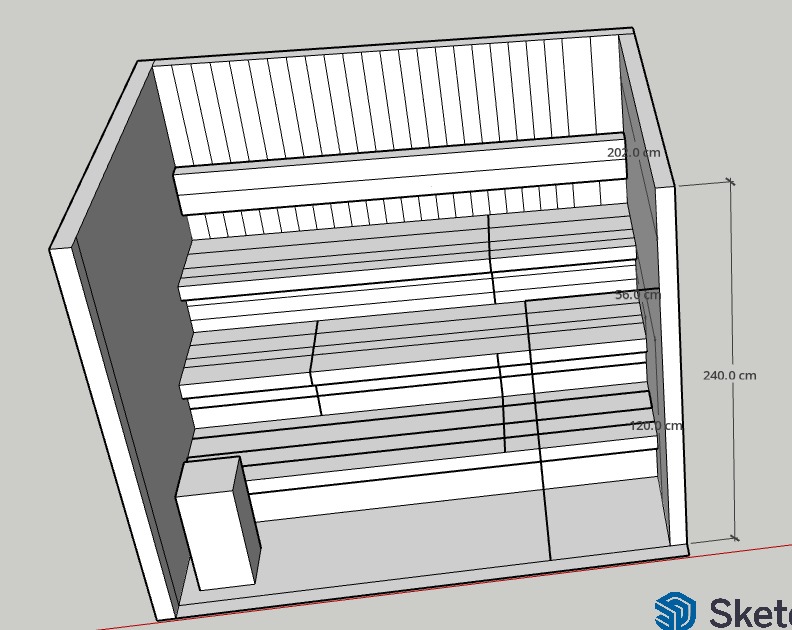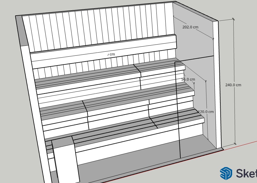Dodatkowo doszło poza pierwszym wyliczeniem ilość konstrucji C24 na górną ławkę za 1300 zł ze względu iż liczyliśmy bez 3 piętra, ale ilość Abachi akurat starczyła na całą saunę bez zmian.